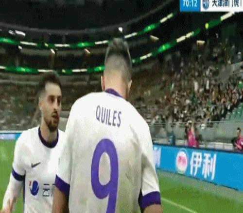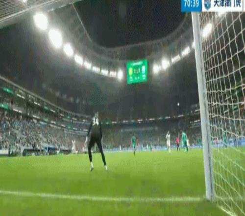 客場(chǎng)作戰(zhàn)的津門虎上半場(chǎng)連入2球,一度以2比0的比分領(lǐng)先。然而,張玉寧、林良銘1分鐘之內(nèi)連入2球。第70分鐘,基萊斯禁區(qū)右肋凌空掃射破門,3比2!