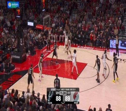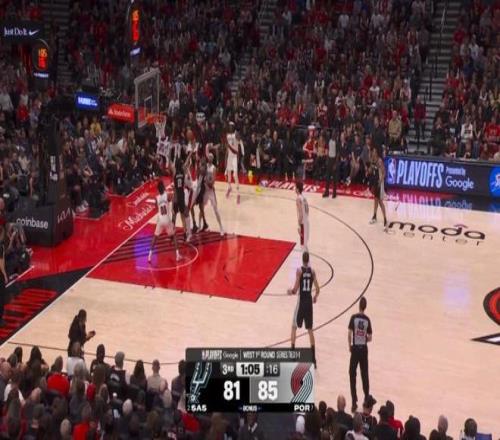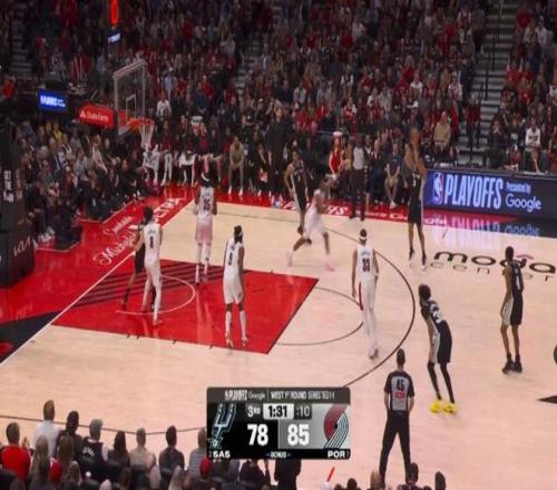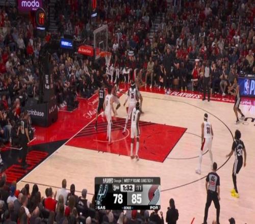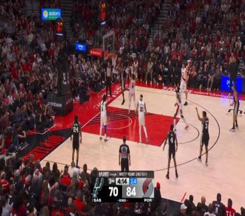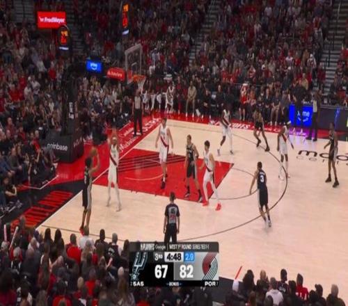 第三節(jié)剩下7分鐘前,馬刺一度64-77落后開拓者,然后哈珀被派上場,并且改變了場上局勢: