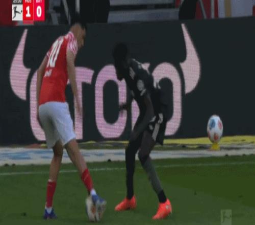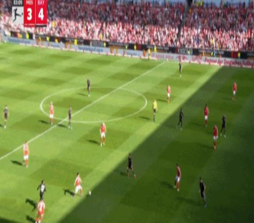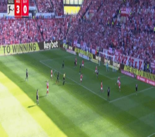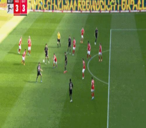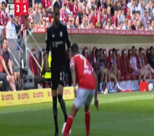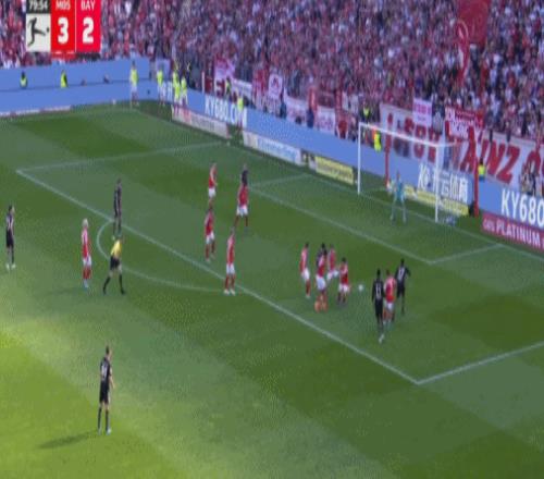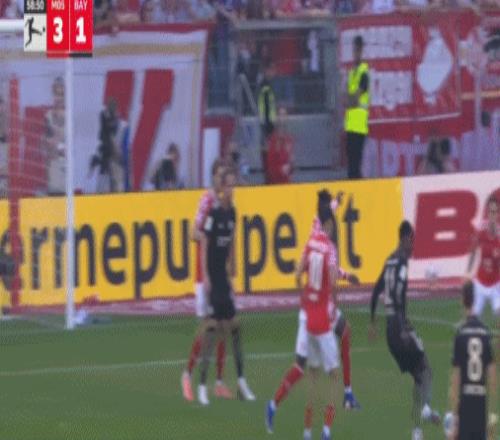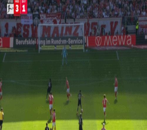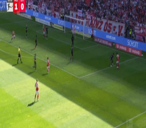 第53分鐘,萊默爾傳中,雅克松凌空抽射破門扳回一球,拜仁1-3美因茨