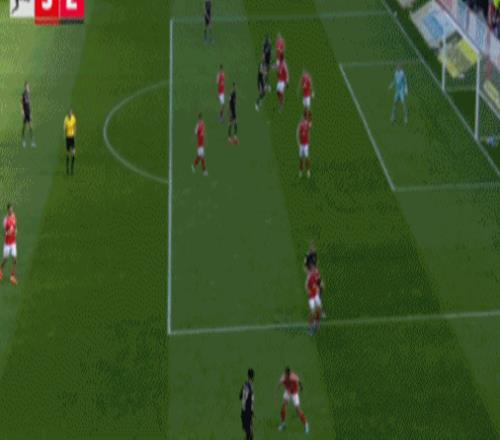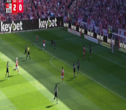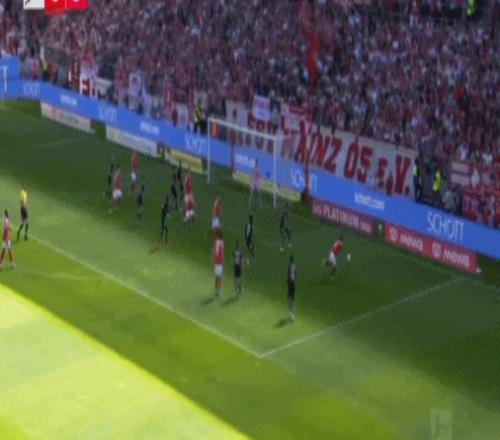 第29分鐘,格雷羅中場(chǎng)丟球,之后的進(jìn)攻內(nèi)貝爾補(bǔ)射破門,美因茨2-0拜仁