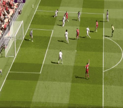 第64分鐘,水晶宮反擊過程中三箭齊發(fā),范迪克展現(xiàn)了頂級的防守能力,干擾了薩爾的射門。