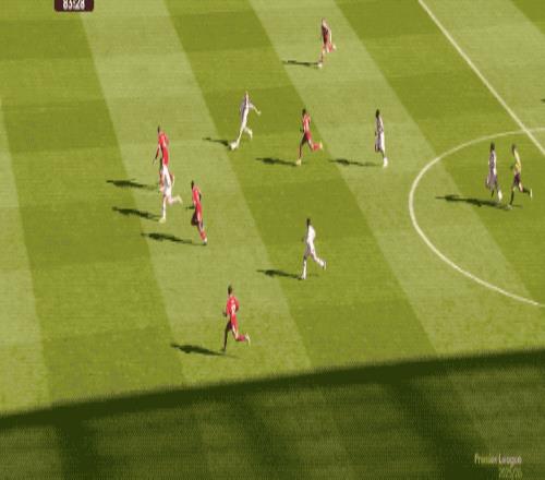 第32分鐘,薩拉赫策動進攻,瓊斯的傳中被擋了一下錯進錯出,薩拉赫搶在索博斯洛伊之前射門,放了高射炮。