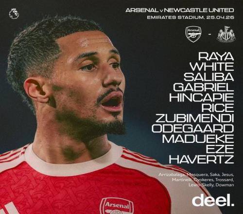 北京時間4月26日0:30,英超第34輪,阿森納主場對陣紐卡。賽前首發(fā)公布。