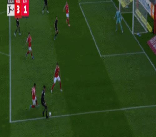 5分鐘之后,奧利塞右路拿球內(nèi)切,突然起腳兜射遠(yuǎn)角,將比分追至2-3,士氣大振的拜仁,第80分鐘抹平了分差,穆夏拉前場直塞策動進(jìn)攻,奧利塞下底傳中,美因茨后防解圍不遠(yuǎn),穆夏拉門前笑納大禮,將比分追至3平,僅僅過了3分鐘,凱恩破門建功,幫助拜仁4-3上演驚天大逆轉(zhuǎn)。