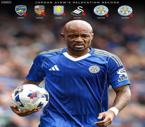 據(jù)統(tǒng)計,在今年隨萊斯特城降級后,喬丹-阿尤在職業(yè)生涯中已經(jīng)6次隨隊降級了。