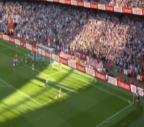 第9分鐘,馬杜埃凱開出戰(zhàn)術(shù)角球,哈弗茨禁區(qū)內(nèi)回敲,埃澤跟上打出世界波,直掛球門左上角,阿森納打破僵局,1-0!
