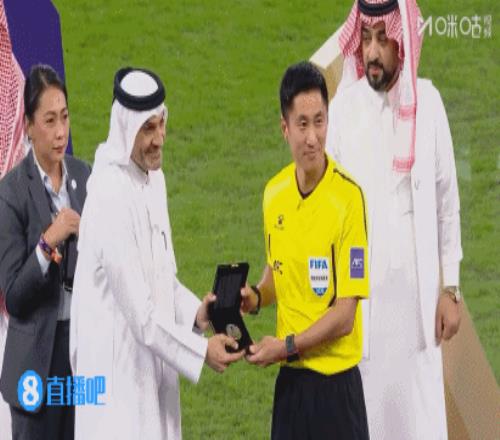 賽后,本場(chǎng)比賽出任第四官員的中國(guó)裁判馬寧隨裁判組一起領(lǐng)取紀(jì)念獎(jiǎng)牌,頒獎(jiǎng)嘉賓中有韓國(guó)足球名宿樸智星。