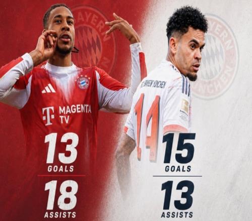 本賽季奧利塞、迪亞斯德甲進(jìn)球、助攻均13+,為拜仁球員首次做到