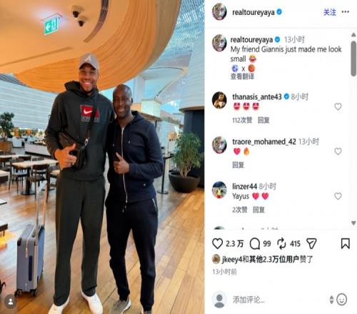 亞亞圖雷社媒曬與NBA字母哥合照,調(diào)侃道:我看起來好小只