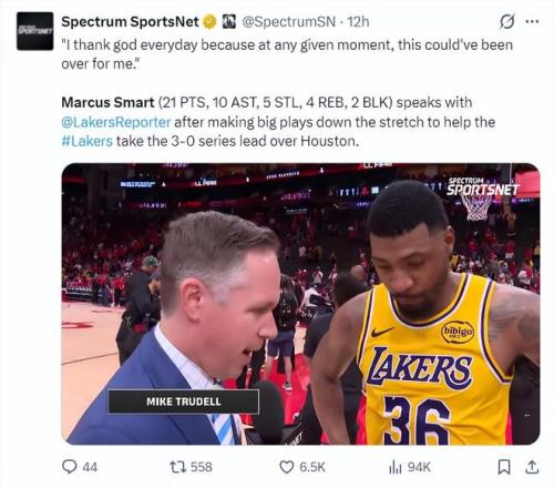 斯瑪特在第四節(jié)還剩27秒搶斷了史密斯的傳球,隨后他在三分線外制造泰特犯規(guī)三罰全中,緊接著才有詹姆斯19秒搶斷與13秒三分絕平。加時賽斯瑪特6個罰球+1個三分直接幫助湖人一波流帶走比賽。