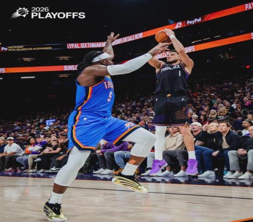 北京時(shí)間4月26日,今天凌晨結(jié)束的一場(chǎng)NBA季后賽:雷霆客場(chǎng)121-109擊敗太陽(yáng),總比分3-0領(lǐng)先。兩隊(duì)都有傷員休戰(zhàn):雷霆的杰倫-威廉姆斯和以賽亞-喬,太陽(yáng)的馬克-威廉姆斯和古德溫。今年季后賽,馬威因腳傷一場(chǎng)都沒(méi)打。