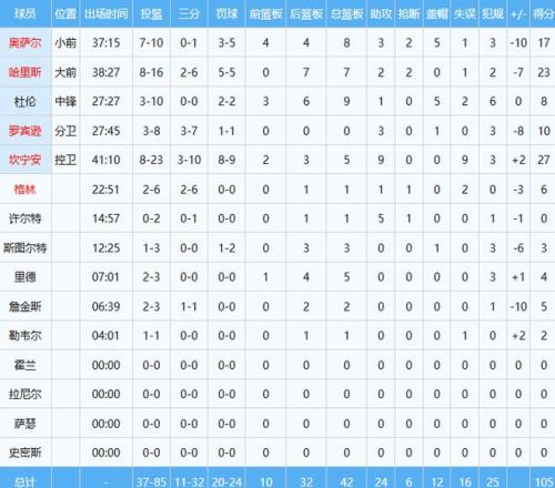 21屆狀元郎坎寧安投籃23中8貢獻(xiàn)27分5板9助同時(shí)出現(xiàn)9次失誤;內(nèi)線核心杜倫投籃10中3,僅拿下8分9板準(zhǔn)兩雙,唯一亮眼的就5帽數(shù)據(jù)。