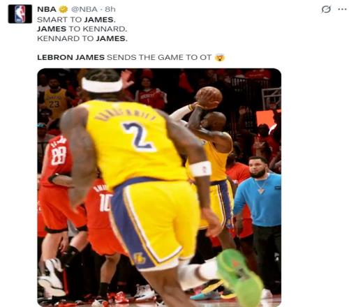 末節(jié)詹姆斯出現(xiàn)了兩個很低級的失誤,但他卻也貢獻了末節(jié)最極致的1防1攻,他先是捅掉了謝潑德的球,隨后面對申京+小賈完成了絕平三分球幫助湖人拖入加時賽。