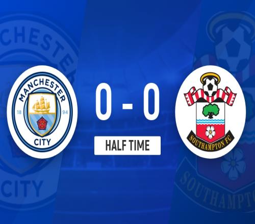上半場傷停補時2分鐘,半場結束,曼城暫0-0南安普頓。