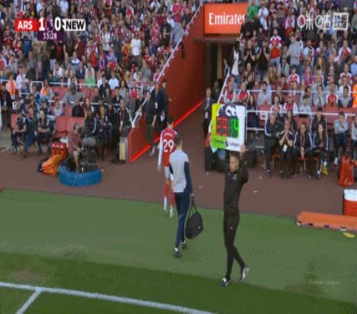 哈弗茨傷退!第33分鐘,哈弗茨受傷無法堅持,直接返回更衣室,約克雷斯替補登場!↓
