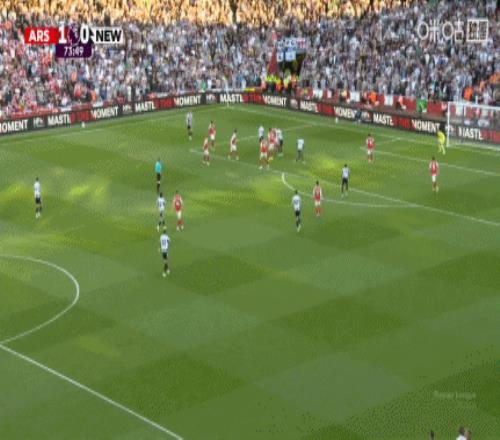 比賽第74分鐘,阿森納反擊,紐卡門將波普出擊到中場(chǎng)附近放倒約克雷斯,被黃牌警告。