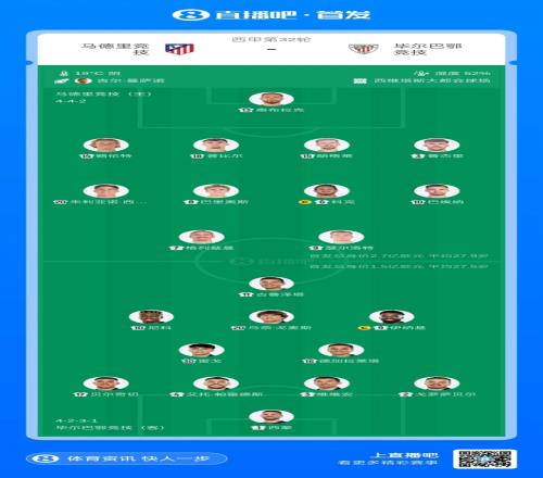 馬競VS畢巴首發(fā):格列茲曼、朱利亞諾西蒙尼出戰(zhàn),尼科在列