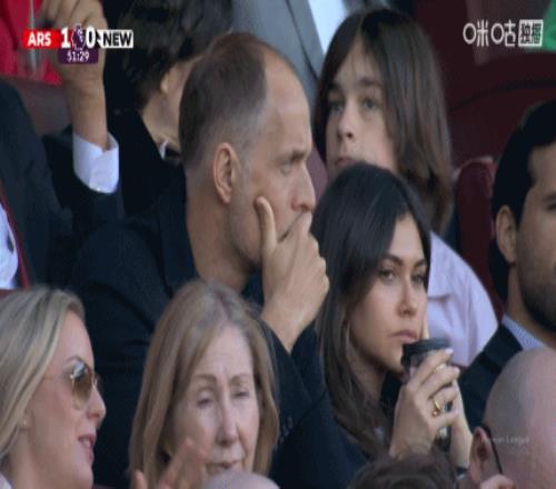 英格蘭隊主帥圖赫爾在現(xiàn)場看球?!?/p>