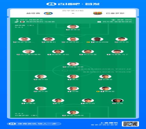 體育播報(bào)04月25日宣 北京時(shí)間今晚22點(diǎn)15,西甲第32輪,巴塞羅那客場(chǎng)對(duì)陣赫塔費(fèi),賽前雙方公布首發(fā)陣容。