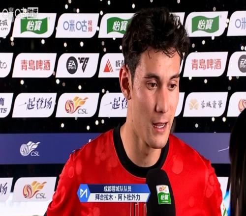體育播報4月25日宣 2026賽季中超第8輪,成都蓉城主場4-0大勝浙江,賽后收獲進球的蓉城球員拜合拉木接受了采訪。