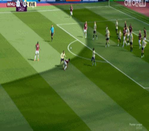 比賽第12分鐘,西漢姆定位球開出,紹切克頭球攻門,頂高了↓