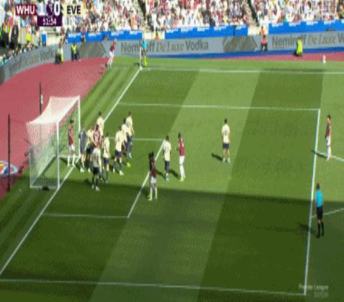 西漢姆聯(lián)10領(lǐng)先埃弗頓!鮑文開(kāi)出角球,紹切克前點(diǎn)爭(zhēng)頂頭球破門