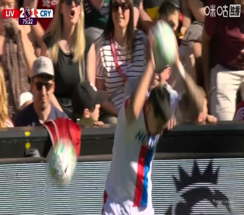 比賽隨后恢復進行,穆尼奧斯在場邊擲界外球時被場邊利物浦球迷怒罵+被拿球砸,穆尼奧斯無奈攤手并向裁判示意。