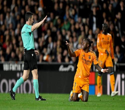 盡管皇馬球員當(dāng)場(chǎng)激烈抗議,但主裁判索托·格拉多認(rèn)定R羅手臂緊貼軀干,拒絕吹罰犯規(guī)。由富爾特斯負(fù)責(zé)的VAR裁判組也未介入復(fù)核。
