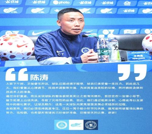 今天下午,主教練陳濤和球員胡睿寶出席了賽前發(fā)布會,并分別介紹本場比賽的備戰(zhàn)情況。