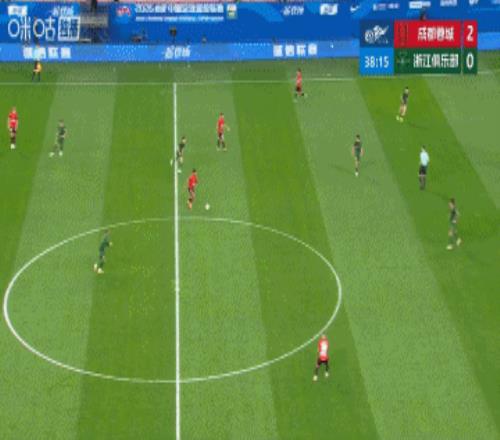 蓉城3球領(lǐng)先!韋世豪破門!第39分鐘,羅慕洛直塞,賀一然插上倒三角回敲,韋世豪跟進(jìn)推射破門,成都蓉城3-0浙江!↓