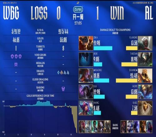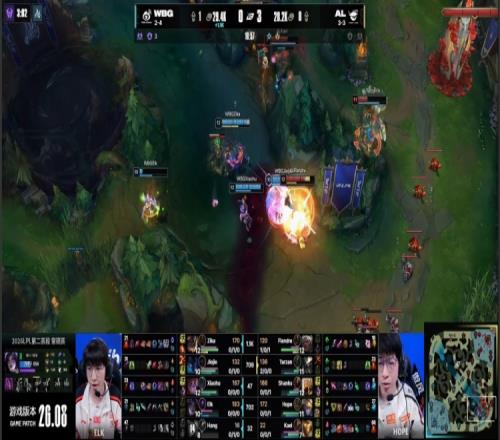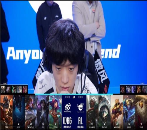 后期AL打出3換4拿到風(fēng)龍魂,AL中路推進(jìn)擊殺xiaohu后回頭拿下大龍,WBG四人接團(tuán)被團(tuán)滅,AL連戰(zhàn)連捷,沖上WBG高地推平基地先下一城。