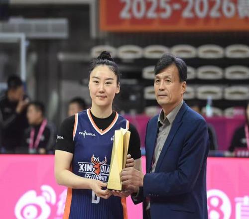 武桐桐領(lǐng)取常規(guī)賽最有價(jià)值球員獎(jiǎng)杯