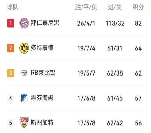 至此,拜仁繼續(xù)刷新在本賽季德甲的傲人戰(zhàn)績,31輪26勝4平1負(fù)積82分,提前奪冠的情況下,已甩開第2的多特18分之多!