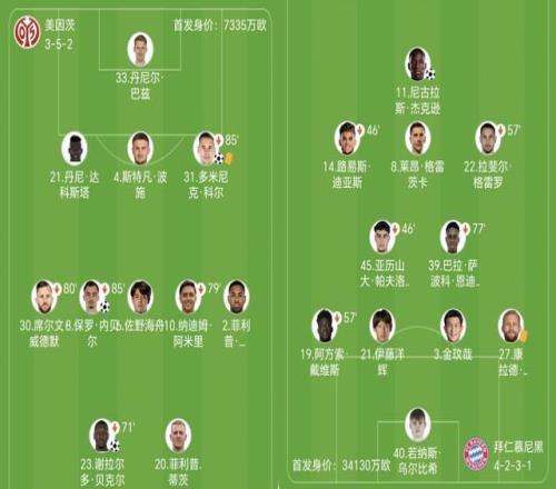 隨著拜仁問鼎本賽季德甲冠軍,主教練孔帕尼為備戰(zhàn)歐冠而采取輪換首發(fā)。