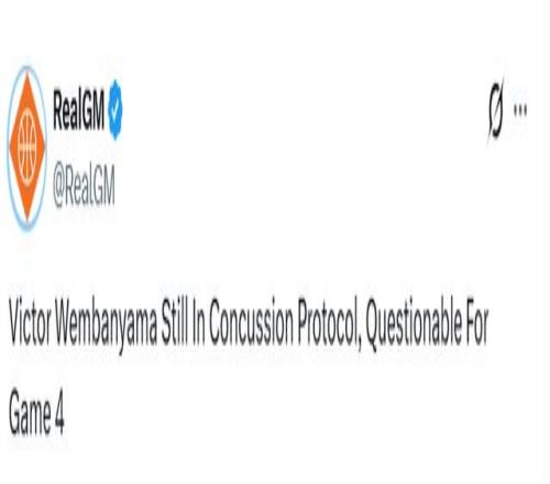 這位年度最佳防守球員,在G2第二節(jié)比賽中頭部撞擊地面后,便一直缺陣至今。馬刺主帥米奇-約翰遜今日確認,球隊兩屆全明星球星文班亞馬仍在執(zhí)行NBA腦震蕩保護協(xié)議,因此馬刺對陣開拓者首輪G4的出戰(zhàn)狀態(tài)暫未確定。