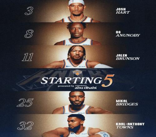 首發(fā)陣容方面,尼克斯這邊,全員健康,教練排出的首發(fā)五人組為:布倫森、布里奇斯、哈特、OG-阿奴諾比、唐斯;老鷹隊這邊,中鋒蘭代爾因右腳踝高位扭傷繼續(xù)缺席G4,奧孔古右膝炎癥帶傷出戰(zhàn),首發(fā)陣容則為:杰倫-約翰遜、丹尼爾斯、CJ-麥科勒姆、亞歷山大-沃克、奧孔古。