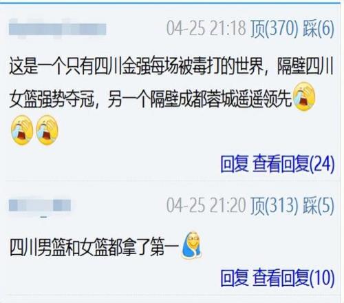 看完四川女籃的成功奪冠,賽后評論區(qū)球迷也是貢獻了不少的精彩評論,在稱贊女籃球員表現(xiàn)的同時,也有不少四川球迷借四川女籃的奪冠來嘲諷四川男籃,并且獲得了不少點贊:這是一個只有四川金強每場被毒打的世界,隔壁四川女籃強勢奪冠,另一個隔壁成都蓉城遙遙領先;四川男籃和女籃都拿了第一;四川男籃的臉,讓四川女籃爭取回來了,成都這個地方,說法真的是神奇!