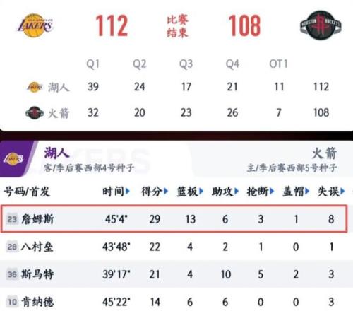 央視網(wǎng):《詹姆斯29+13+6命中絕平三分 湖人加時勝火箭奪賽點》2026年4月25日懂球帝:《湖人加時112-108火箭3-0奪賽點,詹姆斯29+13+6&絕平三分,申京33+16》2026年4月25日