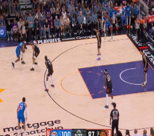 太陽自己在進攻端累死累活,擋拆擋得皮開肉綻也出不了一個空位;反觀雷霆,稍微傳導幾下球,面前就猶如凌晨四點的大馬路一般寬闊。太陽的聯(lián)防簡直是個笑話,球員頻頻失位,輪轉(zhuǎn)慢得像是在放慢動作回放。