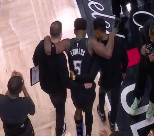 后半段愛德華茲造殺傷,里德點名布勞恩對抗拋投,愛德華茲在起飛蓋帽時,落地也受傷了,明顯反關(guān)節(jié),捂著膝蓋非常痛苦!很快,森林狼官方確認,愛德華茲左膝受傷提前退賽!節(jié)末戈登和小香農(nóng)對飆三分,半場結(jié)束時,森林狼50-54掘金。進入下半場,掘金最多領(lǐng)先7分,但此時森林狼開始發(fā)力了:蘭德爾沖刺上籃,老康利對抗拋投,道蘇姆造殺傷+速射三分球,這三人逐漸追平比分。掘金叫暫停未果,戈登抱摔蘭德爾,隨后自己也返回更衣室接受檢查!穆雷轟進三分,又是道蘇姆站出來,三分+反擊上籃!