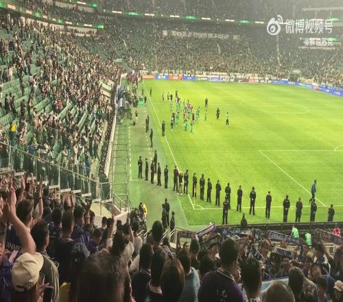 賽后謝場國安路過天津球迷看臺,天津球迷鼓掌送上“國安加油”