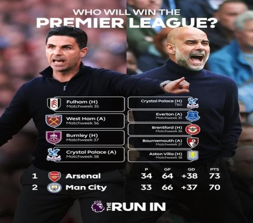 本賽季英超收官前,曼城和阿森納在各項(xiàng)賽事都還有6場(chǎng)比賽。英超方面,曼城還剩5場(chǎng)比賽(3主2客),阿森納還剩4場(chǎng)比賽(2主2客),兩隊(duì)都要對(duì)陣水晶宮,曼城的5個(gè)對(duì)手的英超排名普遍在上半?yún)^(qū),阿森納的剩余對(duì)手的英超排名則普遍在下半?yún)^(qū)。