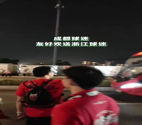 視頻中,浙江球迷乘坐大巴車離開,成都蓉城揮手告別,現(xiàn)場氣氛非常和諧。