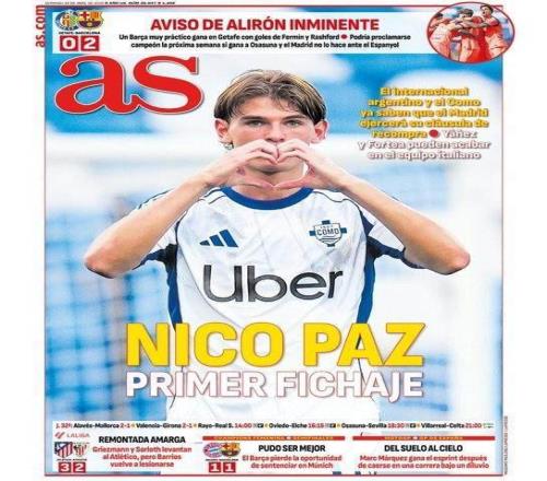 本周日,《阿斯》報(bào)以頭版頭條形式預(yù)告阿根廷中場(chǎng)天才尼科·帕斯回歸皇家馬德里的可能。據(jù)悉,皇馬方面已決定激活體育城青訓(xùn)出身的帕斯回購(gòu)條款,而在科莫練級(jí)有成的帕斯,似乎終于等到了伯納烏的垂青之日。