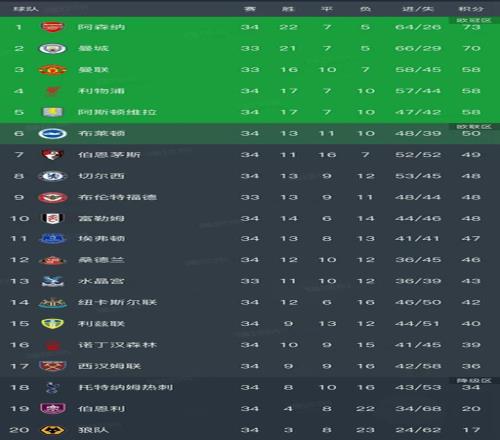 英超最新積分榜