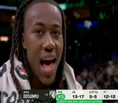 道蘇姆:我的意思是,這就是你打球的意義所在。你就是為了這樣的時(shí)刻、這樣的比賽而打球。我很激動(dòng),感到很幸運(yùn),感謝上帝。