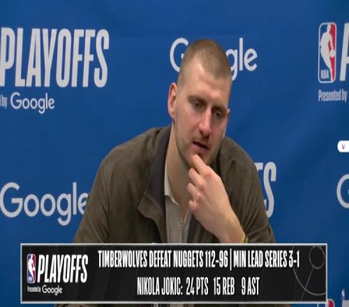 體育播報(bào)4月26日宣 在今天結(jié)束的一場(chǎng)季后賽中,掘金以96-112不敵森林狼。賽后,掘金球星尼科拉·約基奇出席了新聞發(fā)布會(huì)。以下是完整版采訪內(nèi)容。