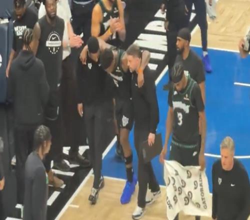 在今天森林狼對陣掘金的西部首輪G4激戰(zhàn)中,愛德華茲在一次防守落地時遭遇了左膝過度伸展,痛苦倒地后被隊友攙扶離場。