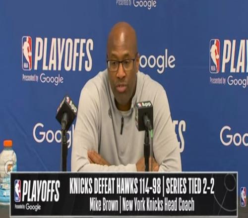 體育播報(bào)4月26日宣 NBA季后賽首輪G4,尼克斯114-98輕取老鷹,大比分戰(zhàn)成2-2平。賽后邁克·布朗接受了媒體采訪,以下為采訪全文。