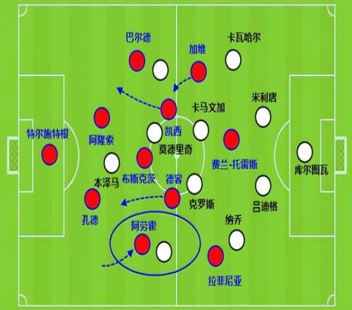 弗里克從陣型上看,似乎是4231,中場沒有像巴薩傳統(tǒng)那樣放2個進(jìn)攻型的中前衛(wèi),反倒是有2個后腰,感覺上不利于進(jìn)攻。